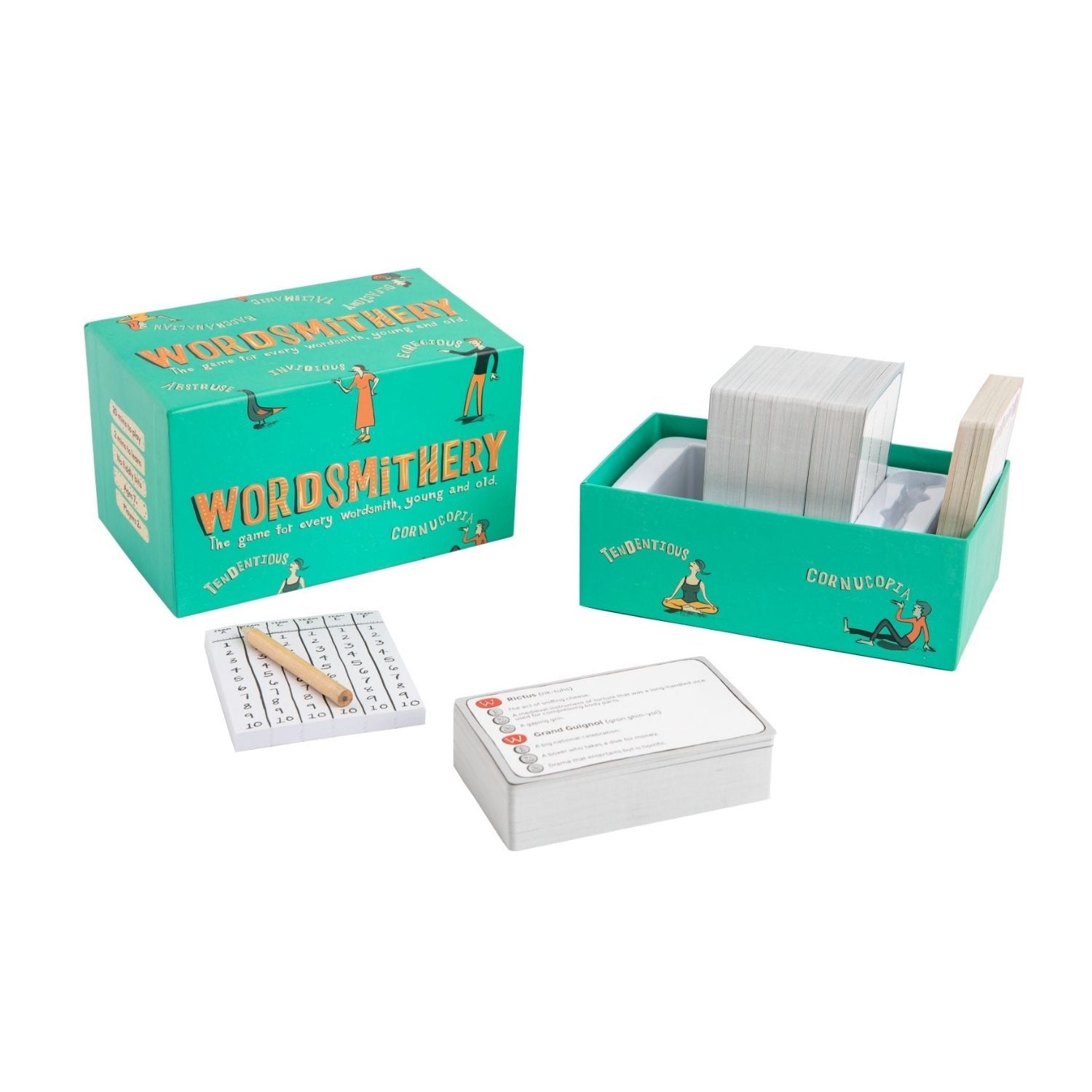 Wordsmithery is the go-to family game that'll have you scratching your head. It's full of all kinds of big words that you THINK you know...but you don't.  Words such as egregious, phalanx, and salubrious.