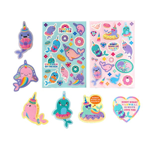 • Stickers feature happy narwhals with donuts and sweet messages